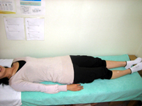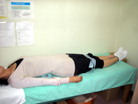 『足を伸ばして仰向けに寝てください』全身の力を抜いた時、片足もしくは両足のつま先が外側に倒れる。 |